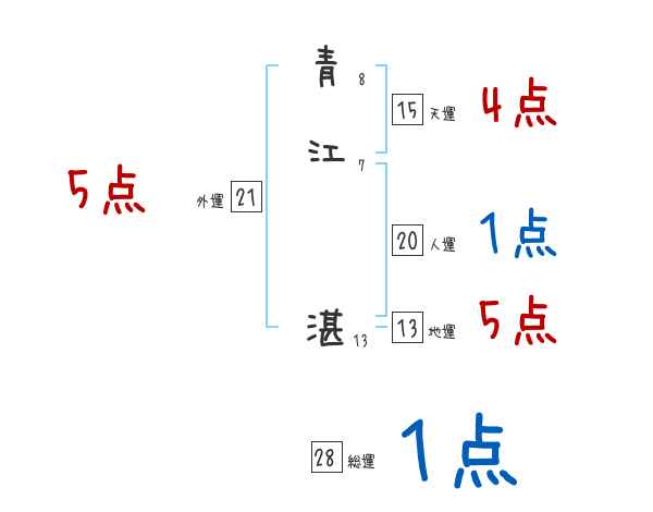 青江湛さんの画数の鑑定結果