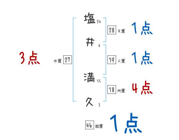 天運![]() | 塩井満久さんの天運は28画の1つ星!家庭環境に注意。スポーツで活躍できる能力があるかも。 家系が持つ宿命的な運勢を表します。祖先から受け継いだ苗字ですので自分の力が及びません。家柄を象徴します。 |