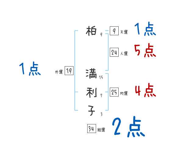 柏満利子さんの画数の鑑定結果