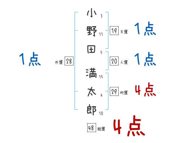 小野田満太郎さんの画数の鑑定結果