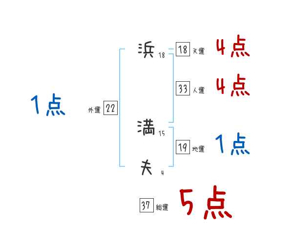 外運![]() | 浜満夫さんの外運は22画の1つ星!努力することが苦手ないっぽう手先が器用。芸術性にも優れる。 生活面を象徴する運勢です。外部から受ける影響力を表し、結婚運、家庭運や職場、環境への順応性を表します。 |