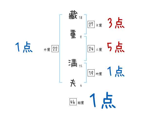 藏重満夫さんの画数の鑑定結果