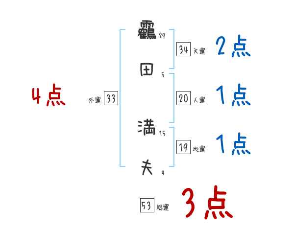 靏田満夫さんの画数の鑑定結果