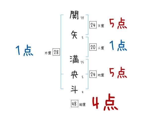 外運![]() | 関矢満央斗さんの外運は28画の1つ星!家庭環境に注意。スポーツで活躍できる能力があるかも。 生活面を象徴する運勢です。外部から受ける影響力を表し、結婚運、家庭運や職場、環境への順応性を表します。 |