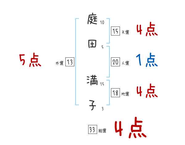 庭田満子さんの画数の鑑定結果