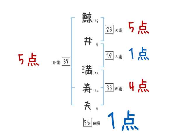 鯨井満寿夫さんの画数の鑑定結果