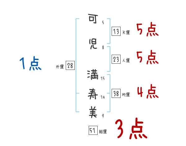総運![]() | 可児満寿美さんの総運は51画の3つ星!変化が激しく、危険に注意。堅実な性格。 あなたの人生を表す1番重要な運勢です。生涯を通じて影響する総合運となり、主に50歳以降の晩年期に影響を及ぼします。 |