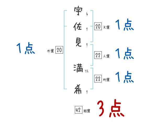 総運![]() | 宇佐見満希さんの総運は42画の3つ星!病気に注意。多芸であるが消極的でおとなしい。 あなたの人生を表す1番重要な運勢です。生涯を通じて影響する総合運となり、主に50歳以降の晩年期に影響を及ぼします。 |