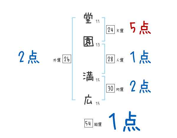 堂園満広さんの画数の鑑定結果