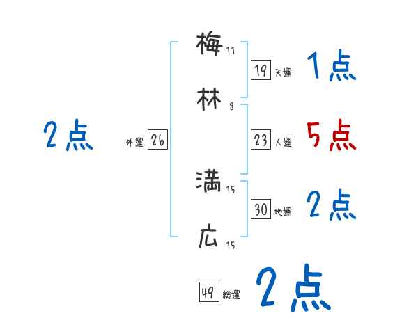 梅林満広さんの画数の鑑定結果