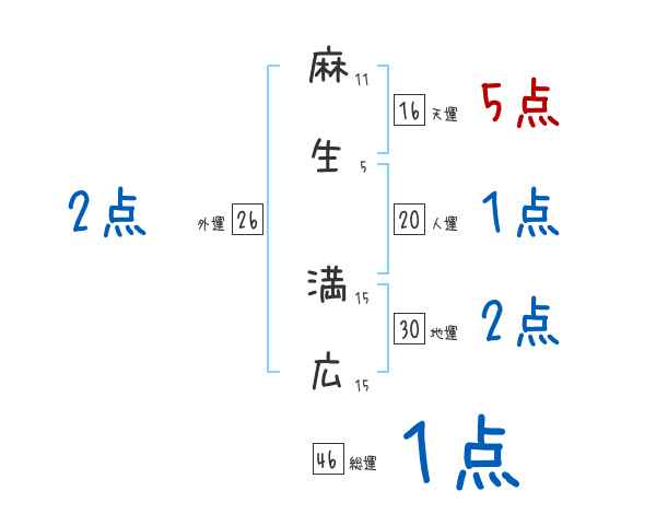 麻生満広さんの画数の鑑定結果