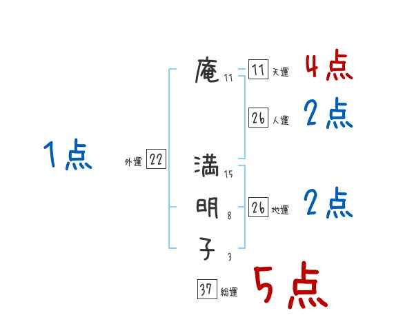 庵満明子さんの画数の鑑定結果