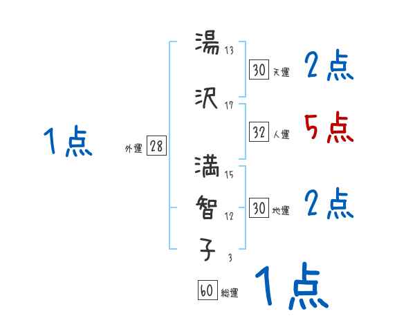 湯沢満智子さんの画数の鑑定結果