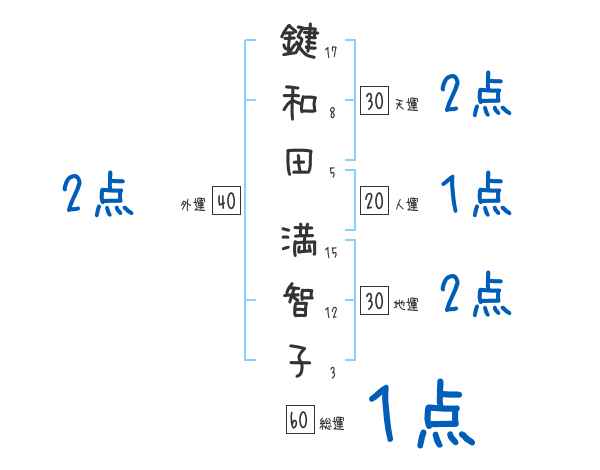 鍵和田満智子さんの画数の鑑定結果