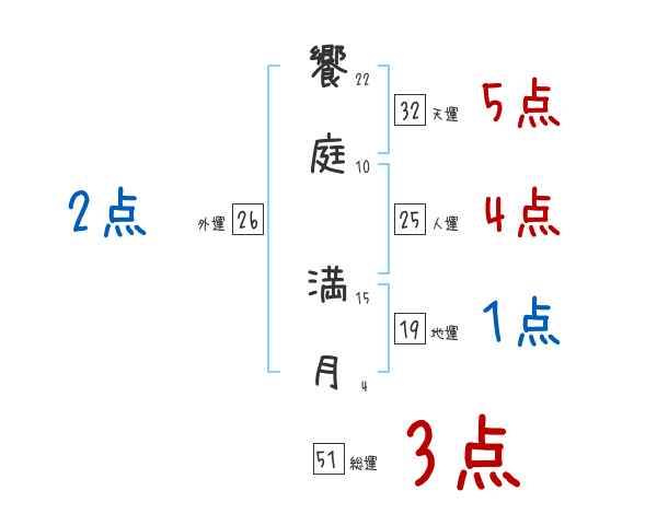 饗庭満月さんの画数の鑑定結果