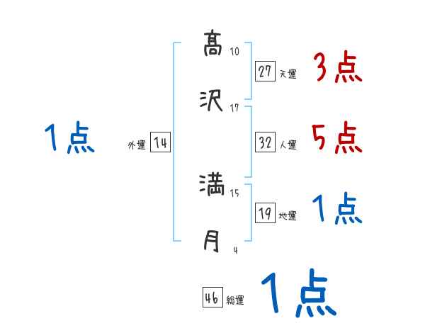 髙沢満月さんの画数の鑑定結果