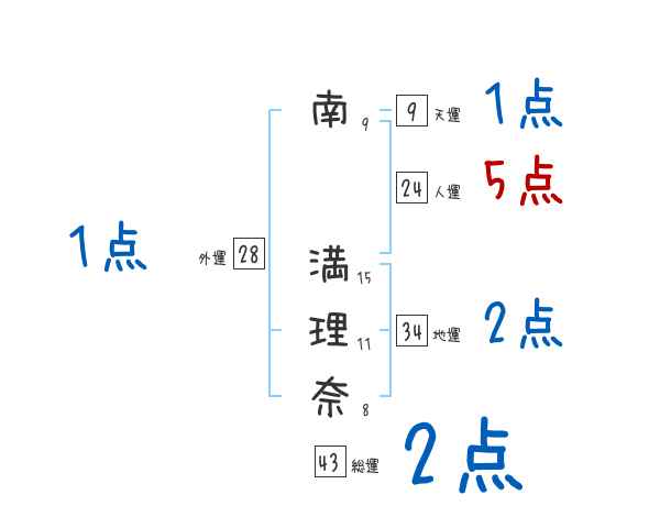 総運![]() | 南満理奈さんの総運は43画の2つ星!頑固な性格で独立心が強いかも。やや非現実的で浪費に注意しましょう。 あなたの人生を表す1番重要な運勢です。生涯を通じて影響する総合運となり、主に50歳以降の晩年期に影響を及ぼします。 |