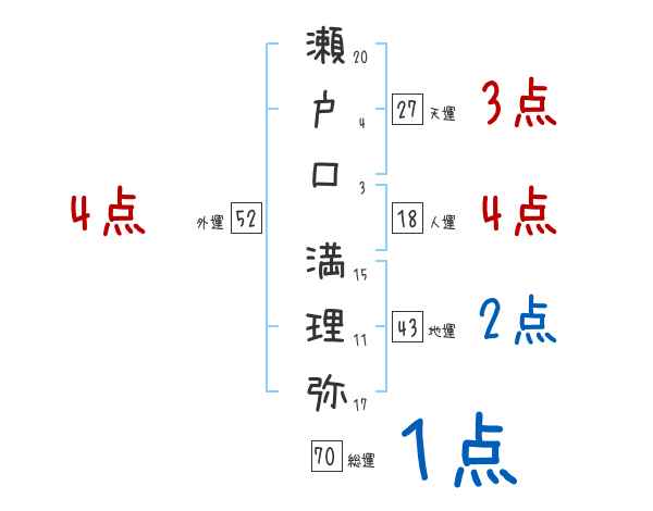 瀬戸口満理弥さんの画数の鑑定結果