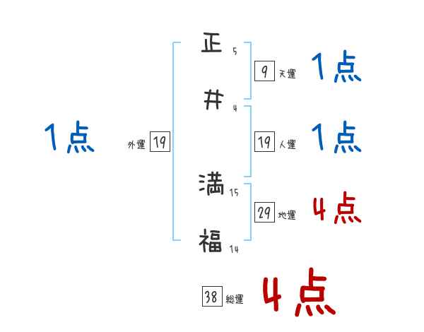 正井満福さんの総運は38画の4つ星