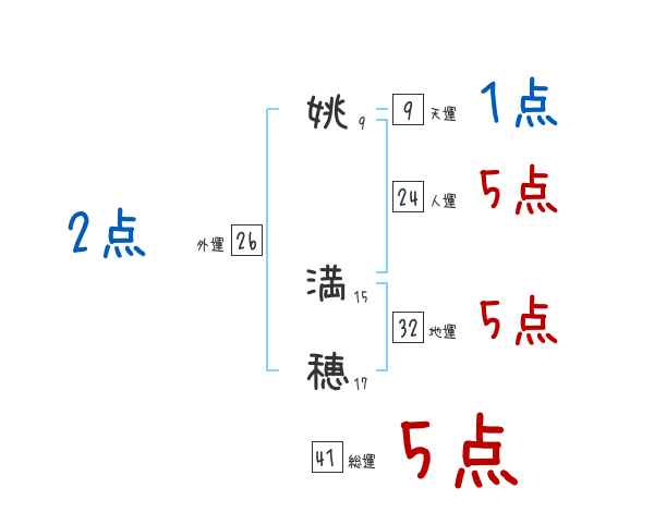 地運![]() | 姚満穂さんの地運は32画の5つ星!柔軟性があり成功する。チャンスが多く金運が良い。 個性を表す基礎的な運勢です。性格形成や対人関係、行動力など家庭環境に影響されます。主に誕生してから20歳くらいまでの若年期の運勢を表します。 |