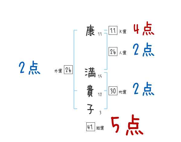 康満貴子さんの画数の鑑定結果