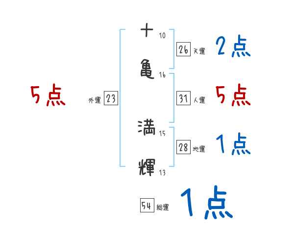 十亀満輝さんの画数の鑑定結果