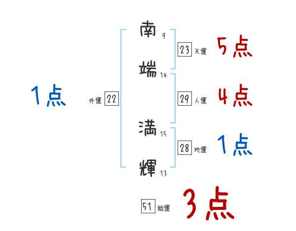 南端満輝さんの画数の鑑定結果