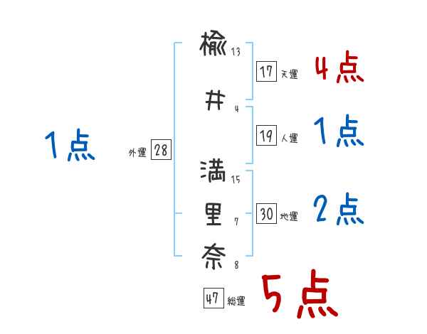 総運![]() | 楡井満里奈さんの総運は47画の5つ星!実力が開花し発展する円満な人生。財に恵まれる。 あなたの人生を表す1番重要な運勢です。生涯を通じて影響する総合運となり、主に50歳以降の晩年期に影響を及ぼします。 |
