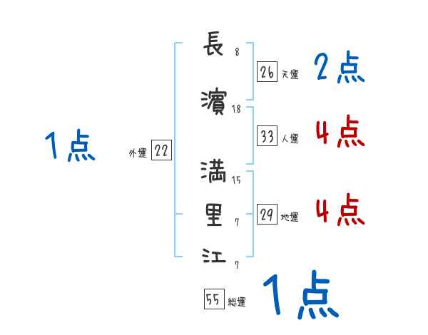 長濵満里江さんの画数の鑑定結果