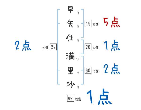 早矢仕満里沙さんの画数の鑑定結果