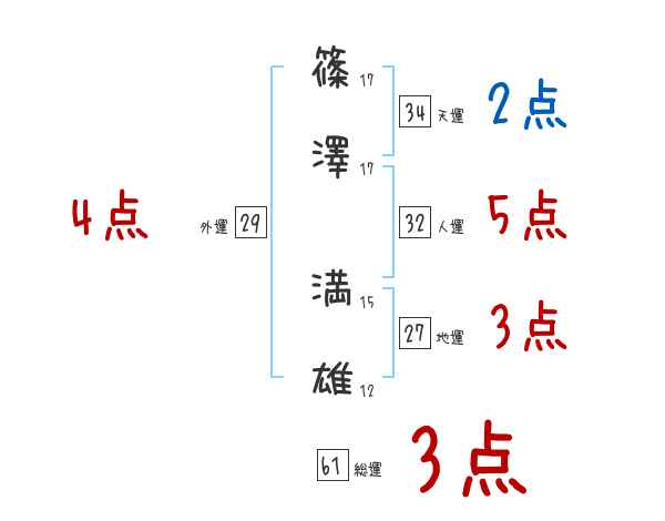 篠澤満雄さんの画数の鑑定結果