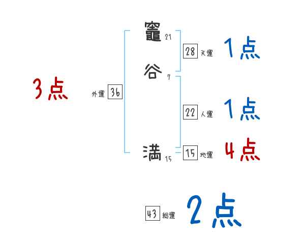 竈谷満さんの画数の鑑定結果