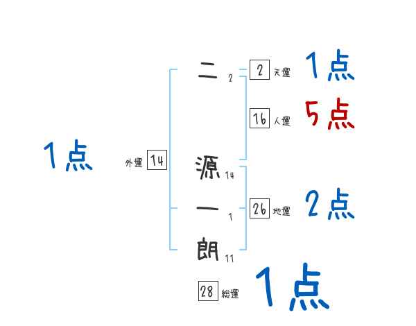 二源一朗さんの画数の鑑定結果