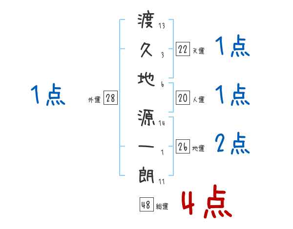 外運![]() | 渡久地源一朗さんの外運は28画の1つ星!家庭環境に注意。スポーツで活躍できる能力があるかも。 生活面を象徴する運勢です。外部から受ける影響力を表し、結婚運、家庭運や職場、環境への順応性を表します。 |