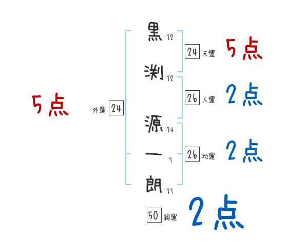 天運![]() | 黒渕源一朗さんの天運は24画の5つ星!家庭運が良く順調な人生。金運にも恵まれる。 家系が持つ宿命的な運勢を表します。祖先から受け継いだ苗字ですので自分の力が及びません。家柄を象徴します。 |
