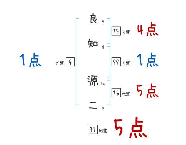 良知源二さんの画数の鑑定結果