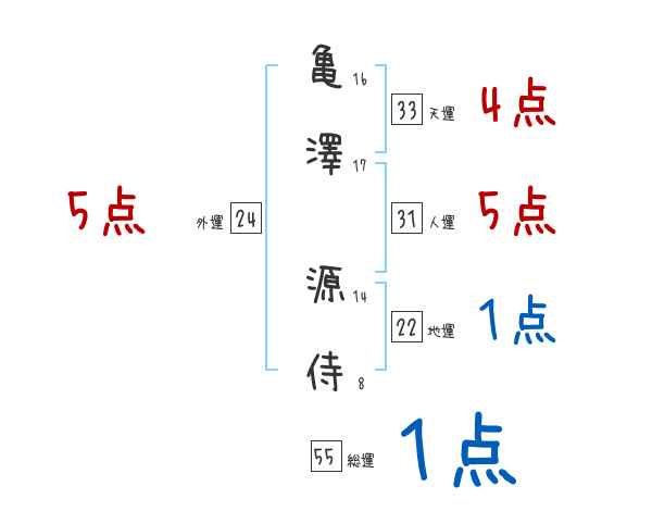 亀澤源侍さんの画数の鑑定結果