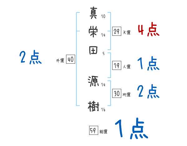 天運![]() | 真栄田源樹さんの天運は29画の4つ星!完全主義で才能がある。厳格な心の持ち主。 家系が持つ宿命的な運勢を表します。祖先から受け継いだ苗字ですので自分の力が及びません。家柄を象徴します。 |