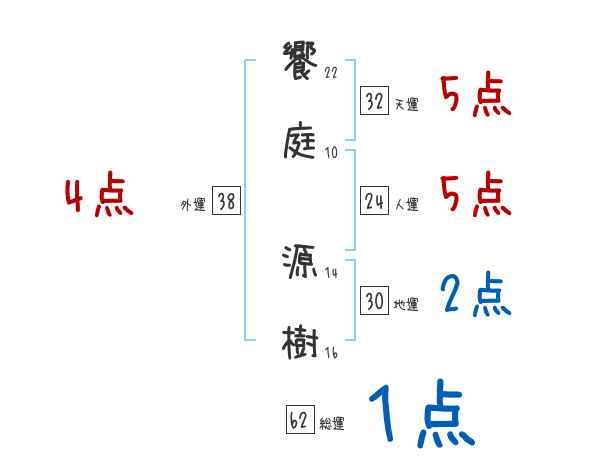 饗庭源樹さんの画数の鑑定結果