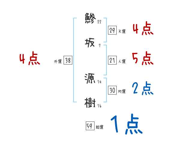 鯵坂源樹さんの画数の鑑定結果