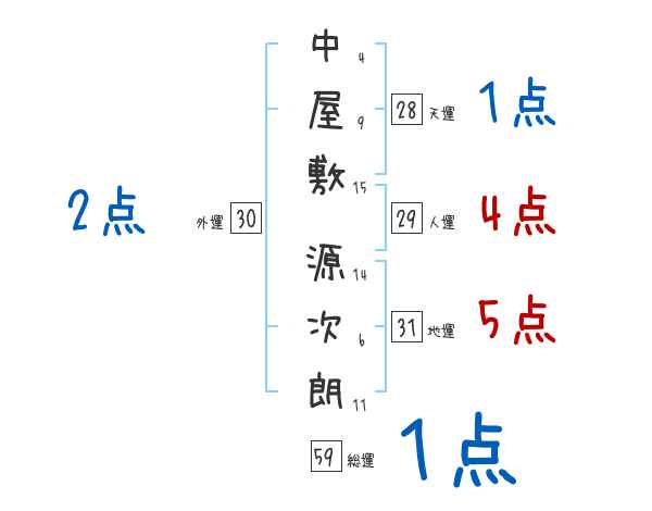 天運![]() | 中屋敷源次朗さんの天運は28画の1つ星!家庭環境に注意。スポーツで活躍できる能力があるかも。 家系が持つ宿命的な運勢を表します。祖先から受け継いだ苗字ですので自分の力が及びません。家柄を象徴します。 |