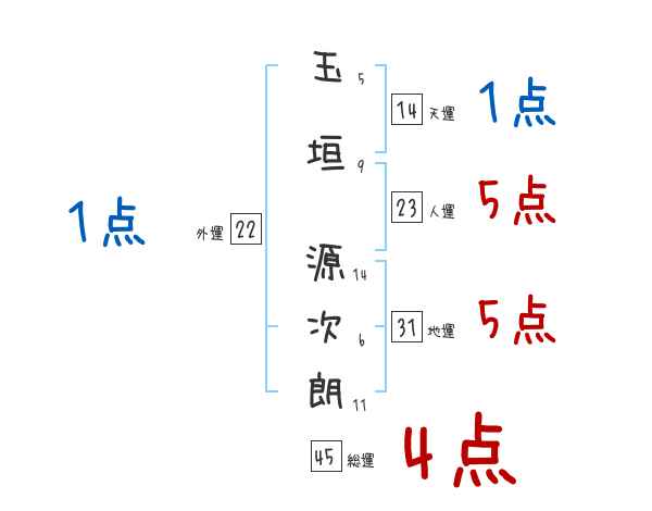 玉垣源次朗さんの画数の鑑定結果