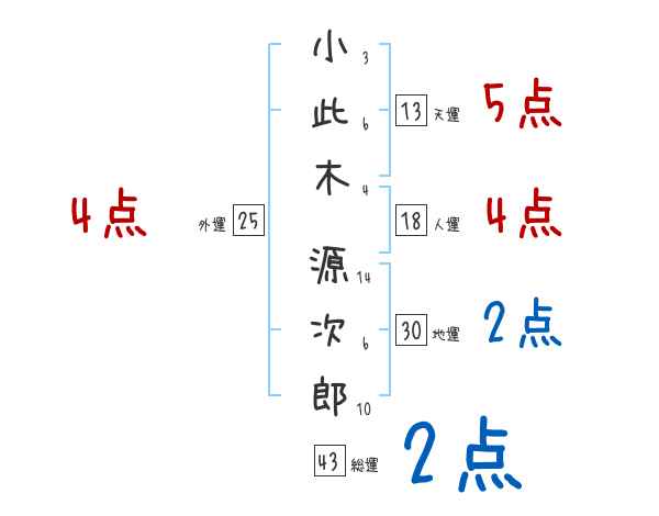 小此木源次郎さんの画数の鑑定結果