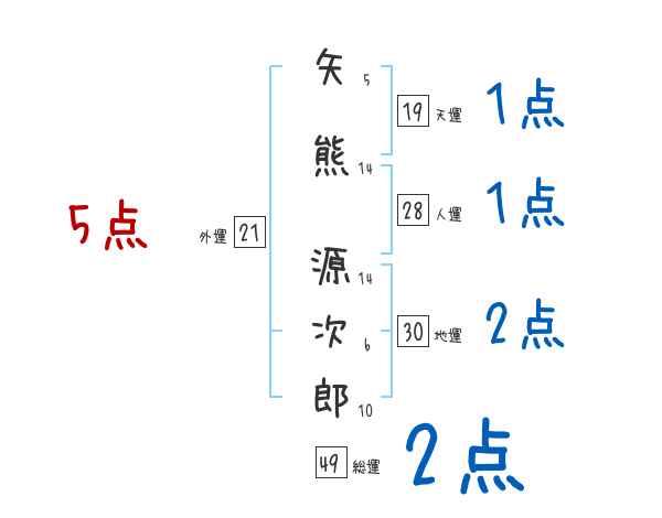 矢熊源次郎さんの画数の鑑定結果