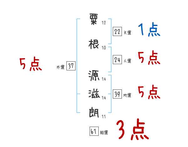 粟根源滋朗さんの画数の鑑定結果