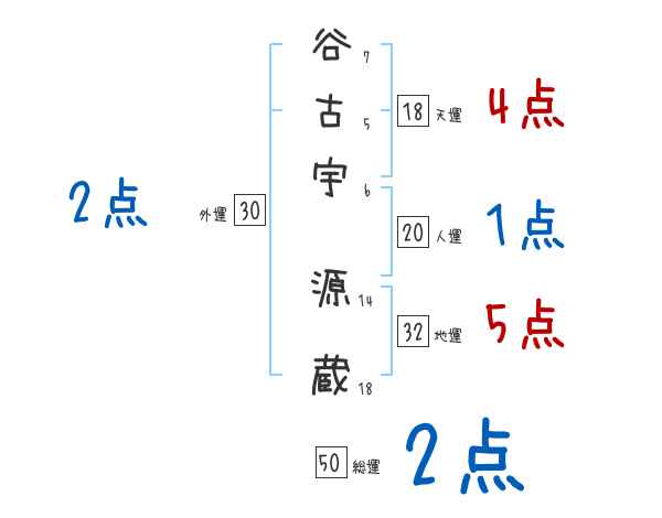 谷古宇源蔵さんの画数の鑑定結果
