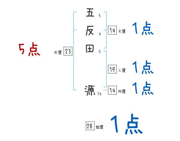 五反田源さんの画数の鑑定結果