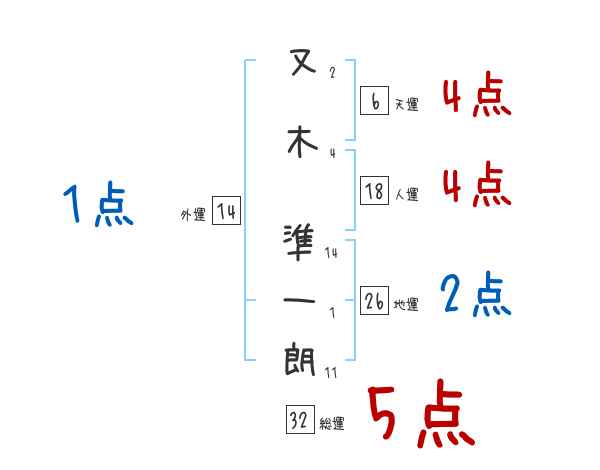 外運![]() | 又木準一朗さんの外運は14画の1つ星!人に対して優しいがストレスを溜め込みがち。人間関係のトラブルを避けるよう気をつけましょう。 生活面を象徴する運勢です。外部から受ける影響力を表し、結婚運、家庭運や職場、環境への順応性を表します。 |