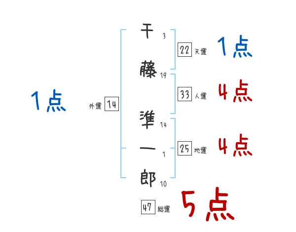 外運![]() | 千藤準一郎さんの外運は14画の1つ星!人に対して優しいがストレスを溜め込みがち。人間関係のトラブルを避けるよう気をつけましょう。 生活面を象徴する運勢です。外部から受ける影響力を表し、結婚運、家庭運や職場、環境への順応性を表します。 |