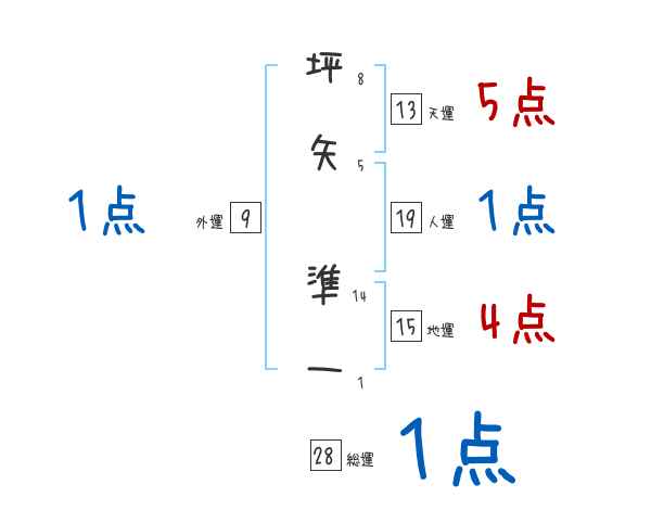外運![]() | 坪矢準一さんの外運は9画の1つ星!消極的で才能を発揮することが苦手なことも。周りの意見に耳を傾けましょう。 生活面を象徴する運勢です。外部から受ける影響力を表し、結婚運、家庭運や職場、環境への順応性を表します。 |
